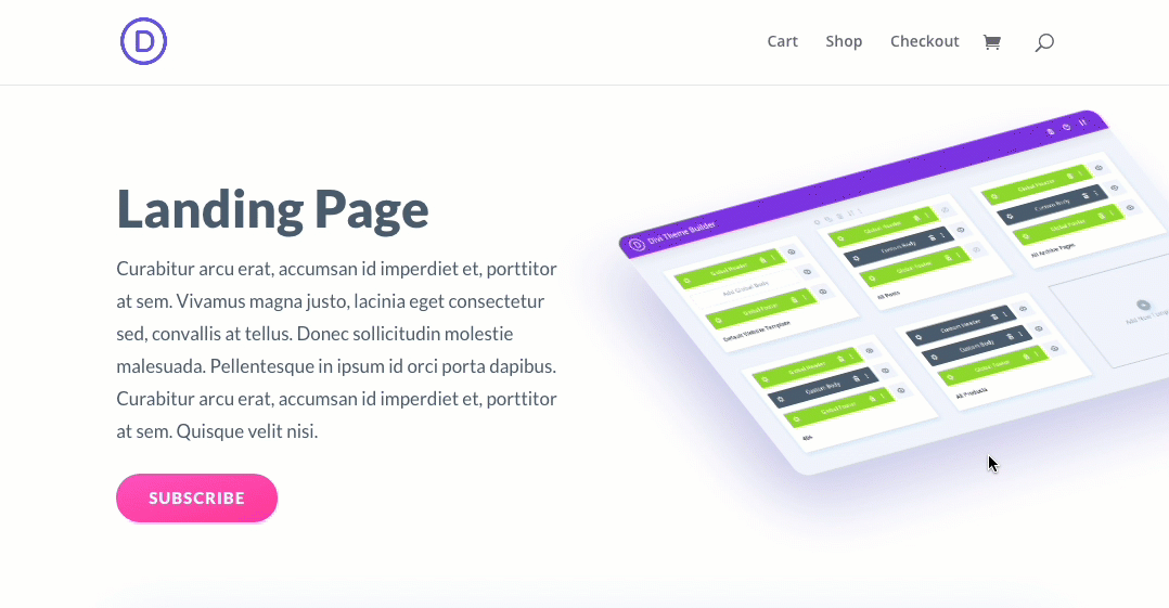 Вам также понадобится по крайней мере одна страница, созданная с помощью Divi Builder для целей тестирования, чтобы назначить шаблон промо-бара для этой страницы, чтобы показать результат.