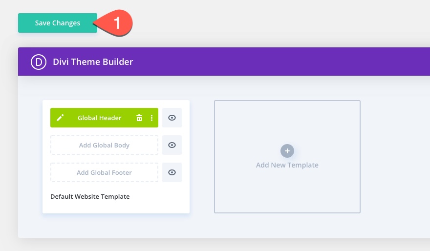 В шаблоне веб-сайта по умолчанию нажмите «Добавить глобальный заголовок», а затем «Создать глобальный заголовок».