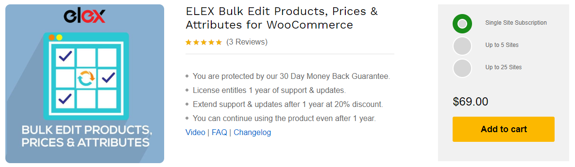 Плагин также предлагает опцию отмены, где вы можете отменить последнее обновление, сделанное с помощью плагина. Он также предлагает возможность исключить продукты из обновления на основе идентификатора продукта или категорий. Дружественный пользовательский интерфейс — еще один важный аспект популярности этого плагина. Вы можете приобрести лицензию на один сайт этого плагина за 69 долларов. Лицензия плагина на 5 сайтов стоит 99 долларов, а лицензия на 25 сайтов — 199 долларов.