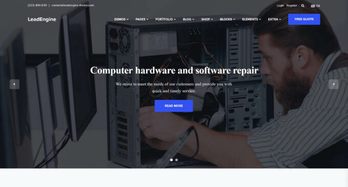LeadEngine — многоцелевая тема WordPress с несколькими демонстрациями, подходящими для ИТ-компаний.