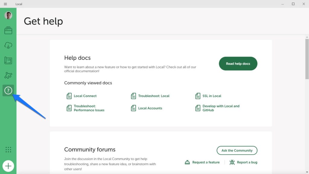 В основном они состоят из быстрых ссылок на документацию и форумы сообщества, возможности загружать ваши журналы и доступа к чату поддержки WP Engine и Flywheel, если вы являетесь клиентом.