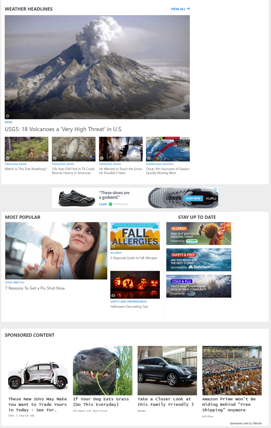 Вот пример с сайта weather.com. Рекламный контент размещается внизу статьи, в разделе, который показывает самый популярный контент, и выглядит так, как если бы он был частью контента веб-сайта.