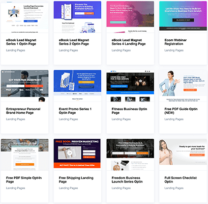 Вы можете выбрать из более чем 100+ шаблонов, включая страницы подписки, страницы веб-семинаров и многое другое.