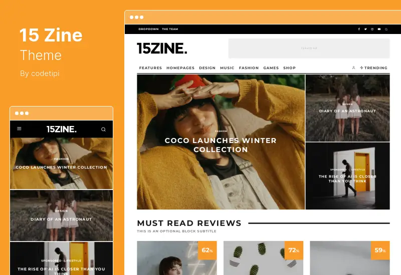 15Zine — это тема WordPress для журналов и газет, предлагающая ряд передовых функций.