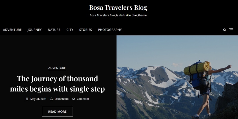 Блог путешественников Bosa — идеальная, быстрая и легкая тема WordPress, созданная специально для блоггеров о путешествиях. Он имеет гладкую темную раскладку, которая добавляет нотку элегантности.