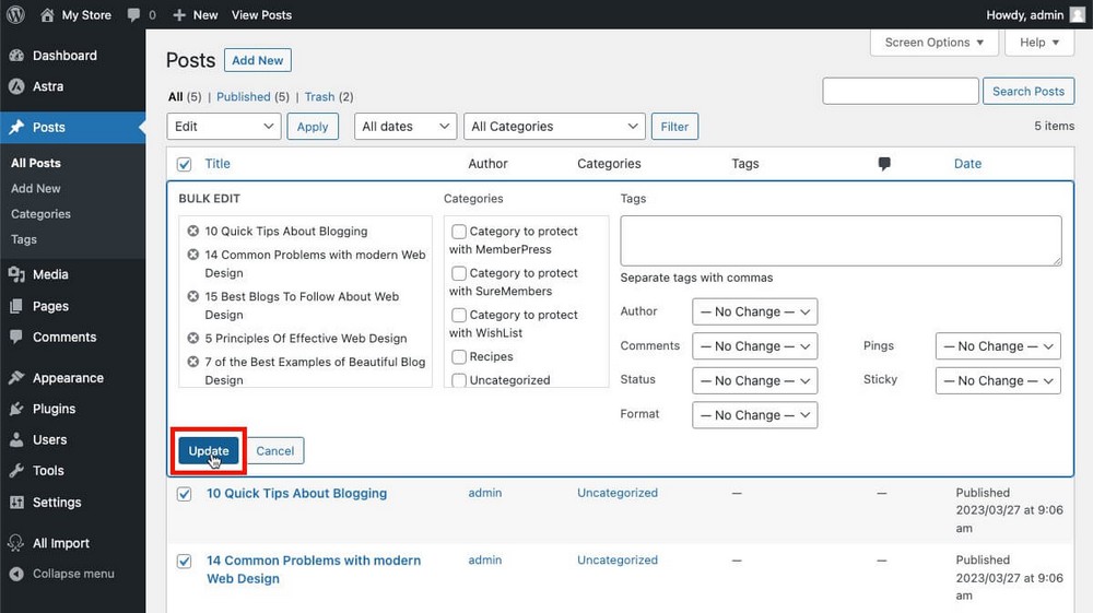 В появившейся панели редактирования оставьте все как есть и просто нажмите «Обновить» .