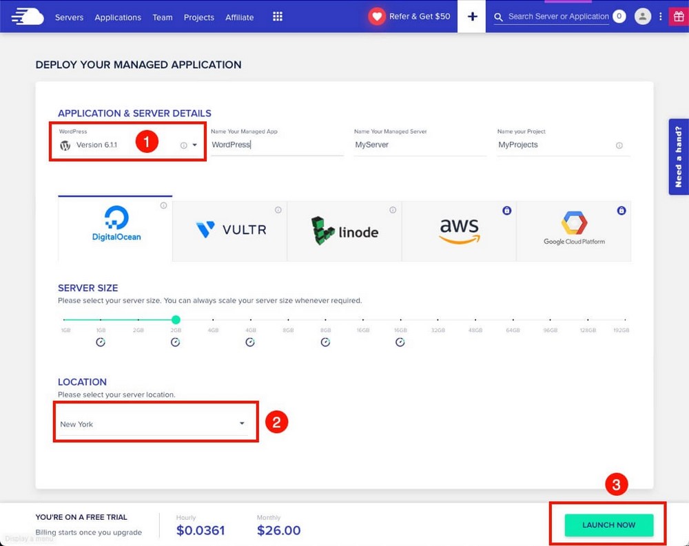 После регистрации вам нужно будет установить WordPress на сервер Cloudways, который вы только что купили.