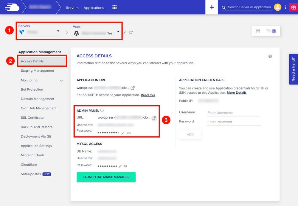 Вы найдете его на вкладке сведений о доступе в Cloudways.