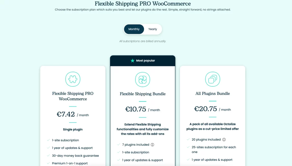 Стоимость доставки по таблице тарифов для WooCommerce с помощью плагина Flexible Shipping начинается от 7,42 евро в месяц.