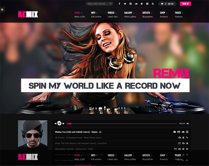 เป็นธีมเวิร์ดเพรสเพลงที่โดดเด่นและน่าหลงใหลสำหรับนักดนตรี ดีเจ โปรดิวเซอร์เพลงหรือเว็บมาสเตอร์ และไซต์หรือธุรกิจอื่นๆ ในอุตสาหกรรมบันเทิง
