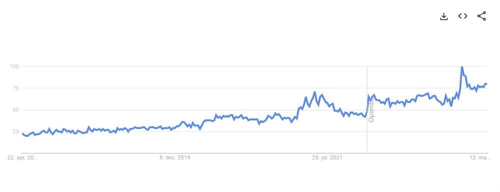 เราจะสังเกตเห็นการพุ่งขึ้นค่อนข้างมากในช่วงปลายปี 2020 ต้นปี 2021 จากกราฟด้านบน ซึ่งบ่งชี้ถึงความนิยมในช่วงการระบาดของ COVID-19 มีธุรกิจจำนวนมากขึ้นบนโลกออนไลน์ ค้นหาวิธีใหม่ๆ ในการสร้างรายได้ (ในฐานะนักการตลาดแบบพันธมิตร) และขยายขนาด (ในฐานะธุรกิจที่เพิ่มโปรแกรมพันธมิตรในกลยุทธ์ของพวกเขา)