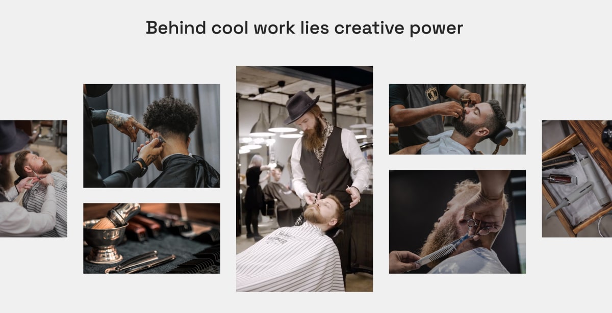 The Bro Barbershop มาพร้อมกับพื้นที่ส่วนหัวที่สร้างสรรค์พร้อมองค์ประกอบหลายอย่าง: