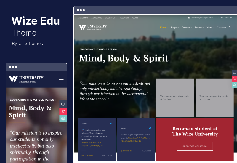 WizeEdu เป็นธีม WordPress Education LMS Courses and Events ที่ออกแบบมาเพื่อใช้กับเว็บไซต์ศูนย์ฝึกอบรม การสอน และมหาวิทยาลัย