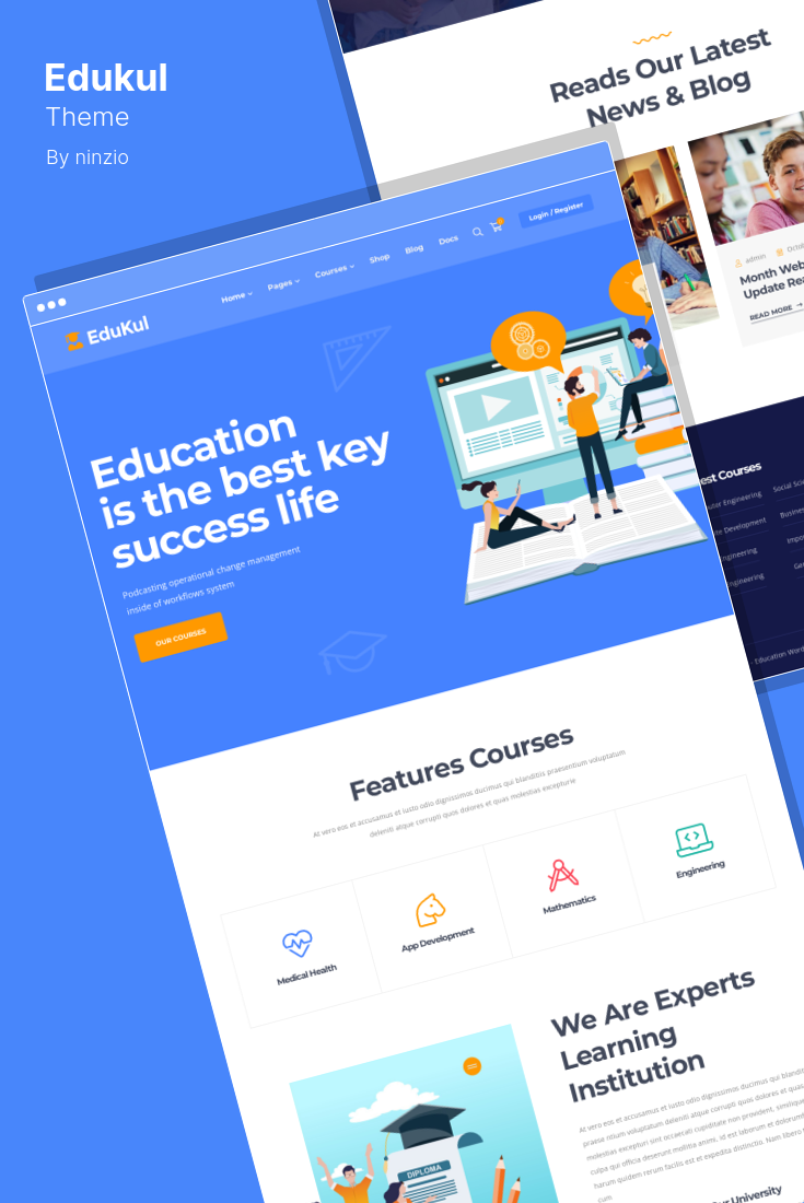 Edukul เป็นธีม WordPress สำหรับการศึกษาและหลักสูตรออนไลน์ที่สามารถนำไปใช้กับสถาบันการศึกษา บล็อก การฝึกอบรม และเว็บไซต์พอร์ตโฟลิโอ