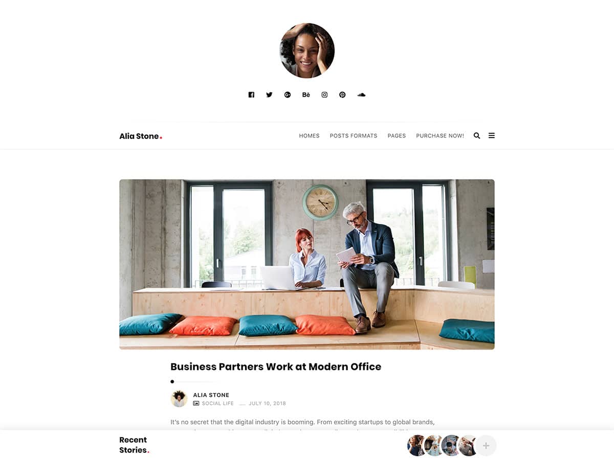 Untold Stories is greatly focused on social media engagement. It supports all social media outlets through its custom widgets. Your audience can enjoy fluid interactions with your brand across all channels, and because of the responsive design, your audience can also enjoy your blog or website on various devices.