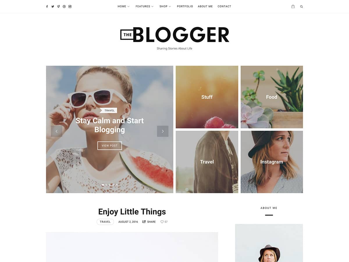 ต้องขอบคุณการอัปเดตเป็นประจำที่ธีมนี้ได้รับตั้งแต่เปิดตัวครั้งแรก ตอนนี้คุณจึงสามารถเข้าถึงตัวอย่างเว็บไซต์บล็อกที่น่าประทับใจซึ่งนำเข้ามาที่แดชบอร์ด WordPress ของคุณได้ด้วยการคลิกเพียงไม่กี่ครั้ง การสาธิตบล็อกส่วนตัวของ TheBlogger เหมาะสำหรับโครงการต่างๆ รวมถึงบล็อกอาหาร การเดินทาง ไลฟ์สไตล์ และวัตถุประสงค์ทั่วไป นอกจากนี้ยังมีการสาธิตบล็อกที่มีสไตล์ซึ่งมุ่งเป้าไปที่การช่วยให้ผู้ใช้โปรโมตบริการและทักษะของตน และหวังว่าจะเข้าถึงลูกค้าหรือโอกาสอื่นๆ ผ่านทางบล็อกได้มากขึ้น