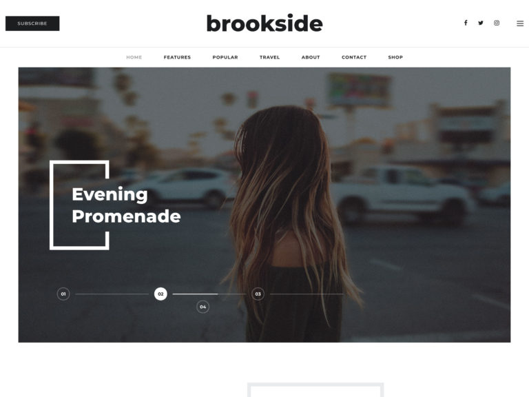 เนื่องจากธีมการเขียนบล็อกนี้มีกลุ่มเป้าหมายค่อนข้างกว้าง รวมถึงบล็อกเกอร์ส่วนตัวและผู้ที่ต้องการเริ่มต้นนิตยสารออนไลน์ของตนเอง คุณจึงสามารถเข้าถึงเทมเพลตและฟีเจอร์ที่เน้นเนื้อหาต่างๆ มากมายในแพ็คเกจ Brookside