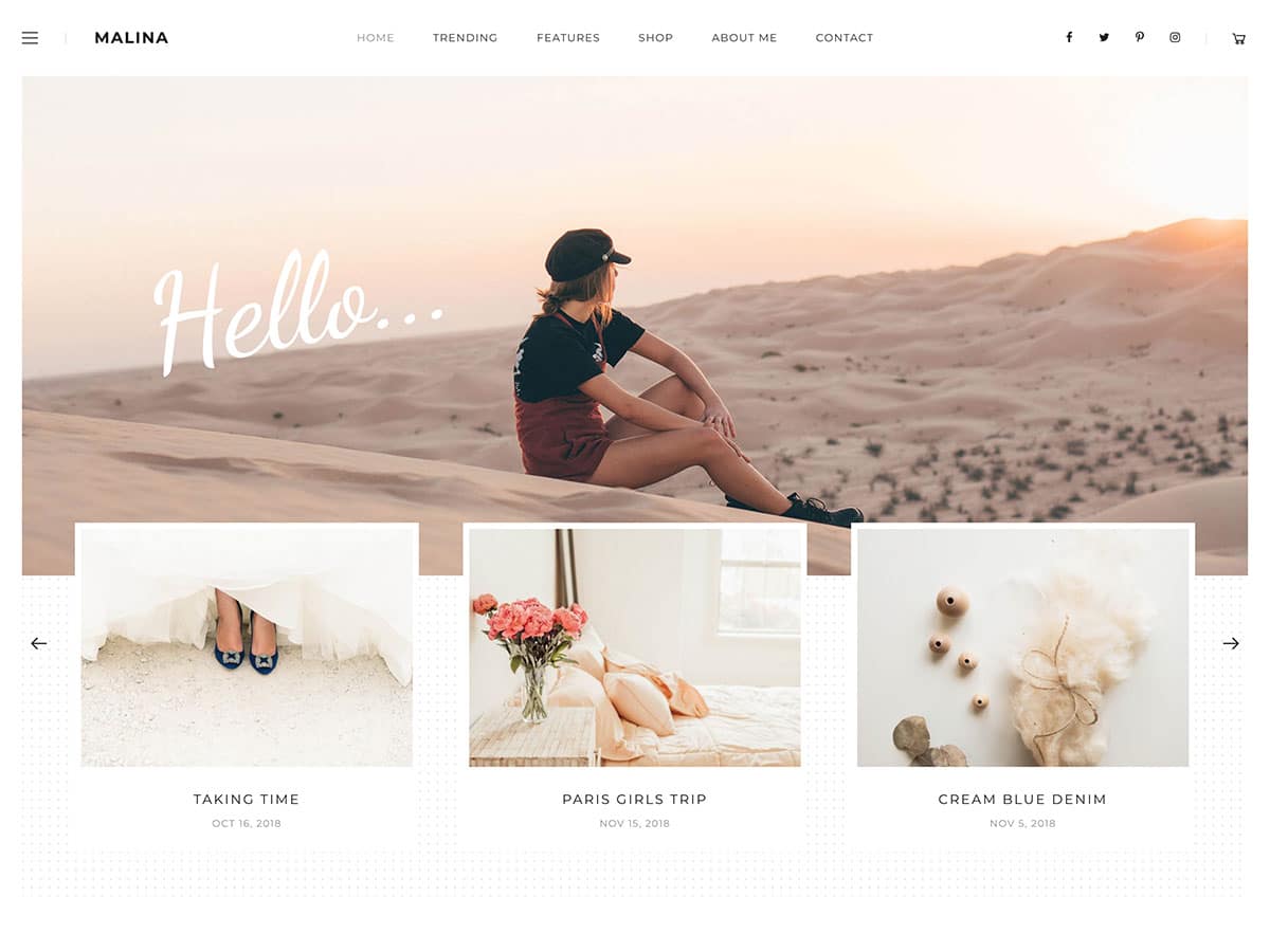 มาลีน่าเป็นธีมบล็อกส่วนตัวที่ครบเครื่องในหนึ่งเดียว โดยมีรูปลักษณ์ที่มีสไตล์มากกว่าคู่แข่งรายอื่นๆ จึงทำให้เป็นตัวเลือกที่เหมาะสำหรับผู้ที่ต้องการความโดดเด่น!