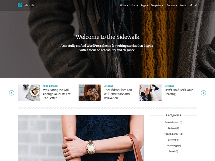 Sidewalk เป็นธีมบล็อกของ WordPress โดยเน้นที่ความสามารถในการอ่านและการนำเสนอเนื้อหาคุณภาพสูง