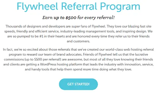 โปรแกรมพันธมิตรเว็บโฮสติ้ง Flywheel ช่วยให้คุณได้รับสูงถึง $500 ต่อการขายในการจ่ายเงินไม่จำกัด พวกเขาให้แบนเนอร์สร้างสรรค์ ภาพโซเชียล และครีเอทีฟโฆษณาที่กำหนดเองเพื่อโปรโมตผลิตภัณฑ์และเพิ่มยอดขายของคุณ