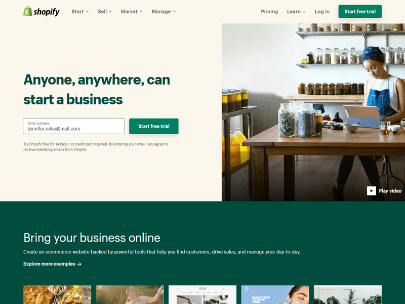 ช่วยให้คุณเริ่มต้นร้านค้าออนไลน์ได้ด้วยการคลิกเพียงไม่กี่ครั้ง Shopify ไม่เพียงแต่มีคุณสมบัติในการโฮสต์ธุรกิจของคุณเท่านั้น แต่ยังช่วยอำนวยความสะดวกในการพัฒนาโดยนำเสนอการปรับแต่งตามรสนิยมของคุณ