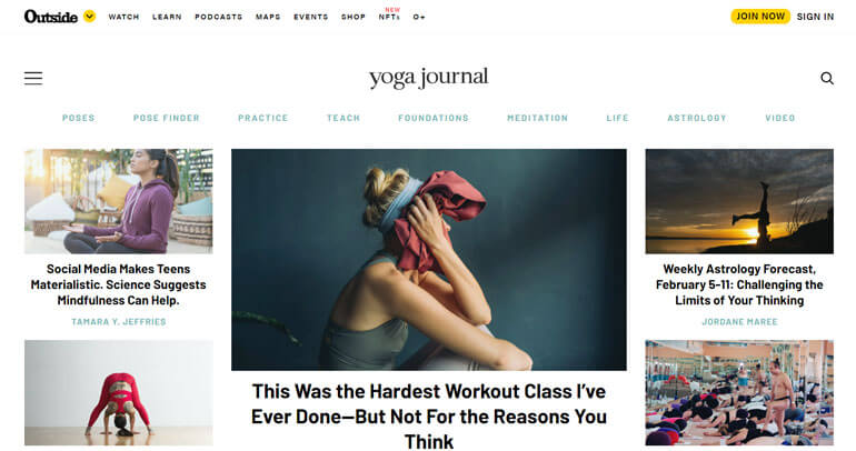 อันดับแรกในรายชื่อเว็บไซต์โยคะที่ดีที่สุด เรามี Yoga Journal ซึ่งเป็นเว็บไซต์โยคะสไตล์นิตยสาร มีโฮมเพจที่เต็มไปด้วยบทความบล็อกที่เกี่ยวข้องกับโยคะ