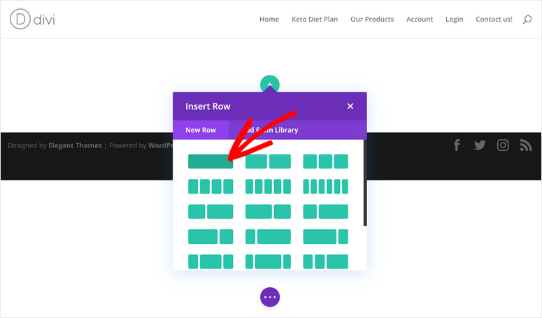 หากต้องการเพิ่มแบบฟอร์มการติดต่อนี้ในหน้าหรือโพสต์ใดๆ ให้เปิด Divi Builder และเลือกเค้าโครงแถวเหมือนที่เราทำกับโมดูลแบบฟอร์มการติดต่อ Divi