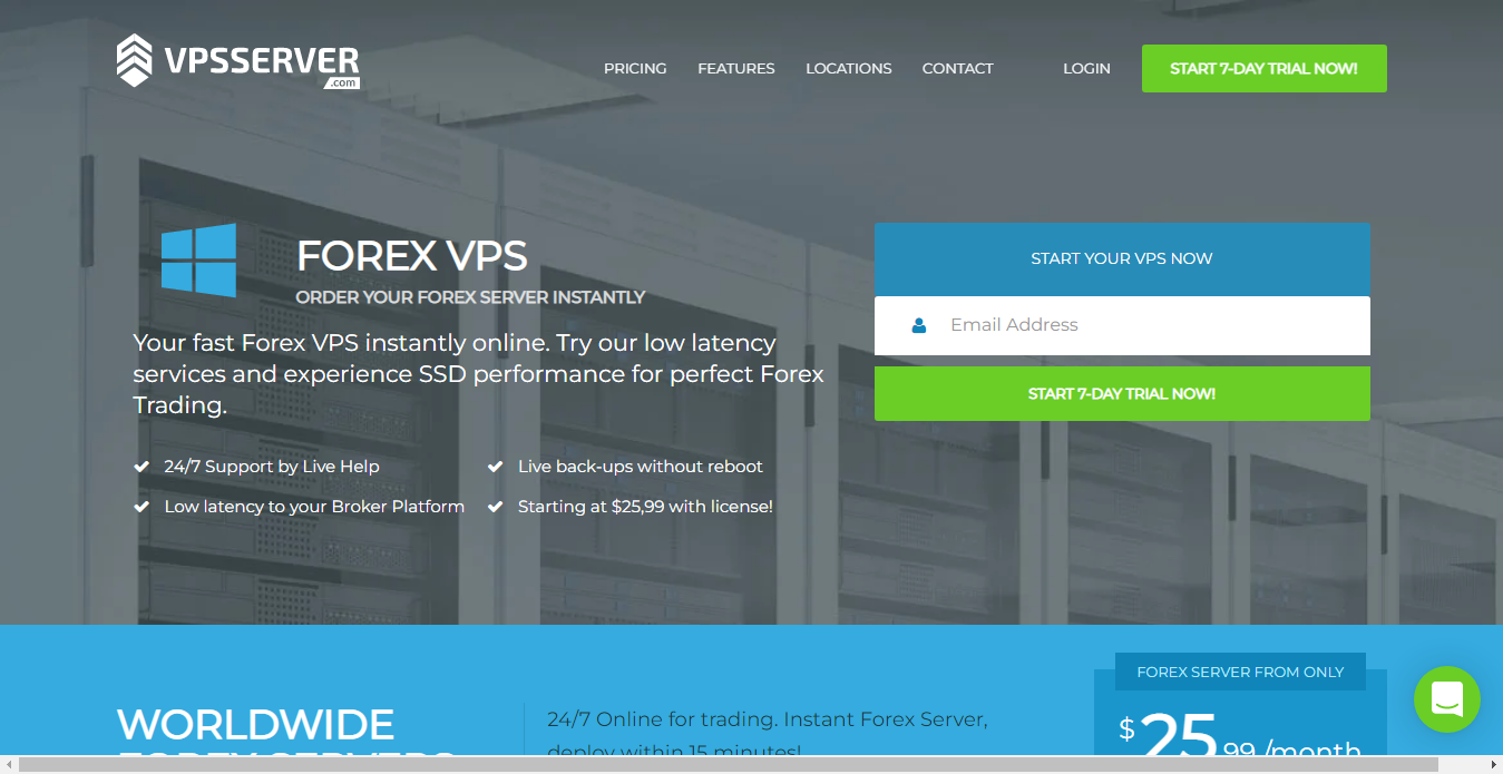 นอกเหนือจากการสำรองข้อมูลแล้ว VPS สำหรับ forex นี้ยังมีศูนย์ข้อมูล 17 แห่งตั้งอยู่ใกล้กับโบรกเกอร์หลายแห่ง มี RAM มากถึง 192GB และคอร์ CPU 32 คอร์ และรับประกันเวลาทำงาน 99.9% ที่ตั้งเซิร์ฟเวอร์ ได้แก่ นิวยอร์ก ลอนดอน แอฟริกาใต้ อเมริกาเหนือ และโตเกียว