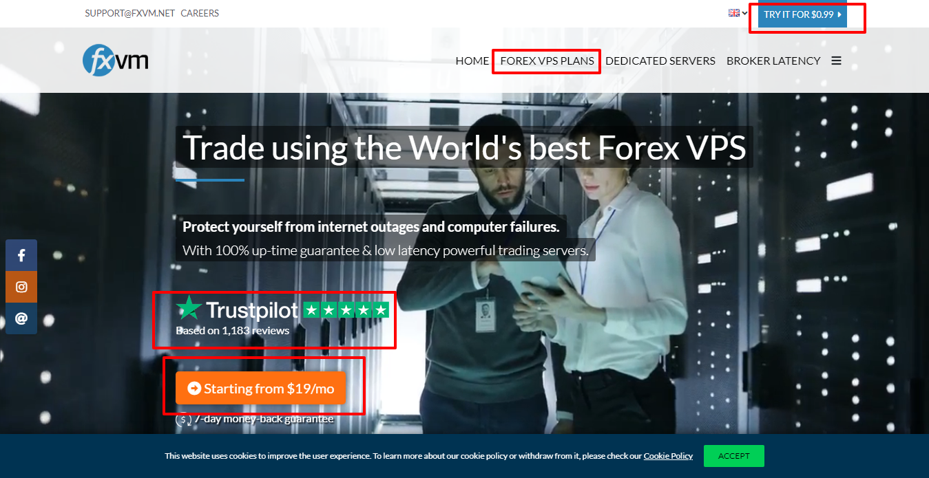 FXVM สัญญาว่าจะมีเวลาให้บริการ 100% วิศวกรของพวกเขาทำงานตลอดเวลาโดยใช้ระบบสำรองและตรวจสอบเพื่อให้เซิร์ฟเวอร์ออนไลน์ตลอดเวลา