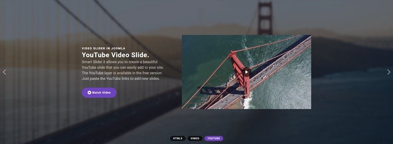 รักการใช้สื่อสมบูรณ์? Smart Slider 3 ให้คุณเพิ่มเลเยอร์รูปภาพและวิดีโอได้เช่นกัน เลเยอร์รูปภาพสามารถเพิ่มไอคอนหรือองค์ประกอบการออกแบบอื่นๆ ได้อย่างดี แน่นอนว่าวิดีโอมีประโยชน์มากในการทำให้แถบเลื่อนของคุณสมบูรณ์ด้วยเนื้อหาที่เป็นภาพ คุณสามารถเพิ่มวิดีโอจาก YouTube และ Vimeo ลงในสไลด์ของคุณได้ พวกเขามีตัวเลือกในการกำหนดค่าตามที่คุณต้องการ ตัวอย่างเช่น มีตัวเลือกในการตั้งค่าภาพหน้าปกหรือทำให้วิดีโอเล่นอัตโนมัติ