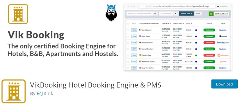 ซอฟต์แวร์จองโรงแรม VikBooking พร้อมใช้งานเป็นปลั๊กอินดั้งเดิมบนแพลตฟอร์ม WordPress แล้ว หนึ่งในคุณสมบัติที่โดดเด่นคือปฏิทินความพร้อมใช้งานและภาพรวมการเข้าพักที่มองเห็นได้ในแบบเรียลไทม์ คุณจัดการห้อง ประเภทห้อง และยูนิตย่อยได้ มีรหัสย่อแปดแบบสำหรับหน้าต่างๆ เพื่อให้คุณสร้างมุมมองต่างๆ สำหรับส่วนหน้า นอกจากนี้ ปลั๊กอินยังสอดคล้องกับ Channel Manager