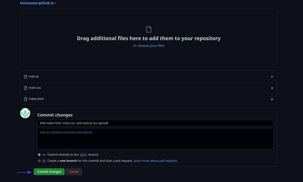 ในการทำเช่นนี้ ให้คลิกเมนู Add file ในที่เก็บของคุณ แล้วเลือกตัวเลือก อัปโหลดไฟล์ จากนั้นเลือกไฟล์ของเว็บไซต์ของคุณ โดยมีไฟล์ HTML หลักชื่อ index.html อย่าลืมใส่ไฟล์ CSS และ JavaScript ทั้งหมดของคุณในที่เก็บข้อมูลด้วย