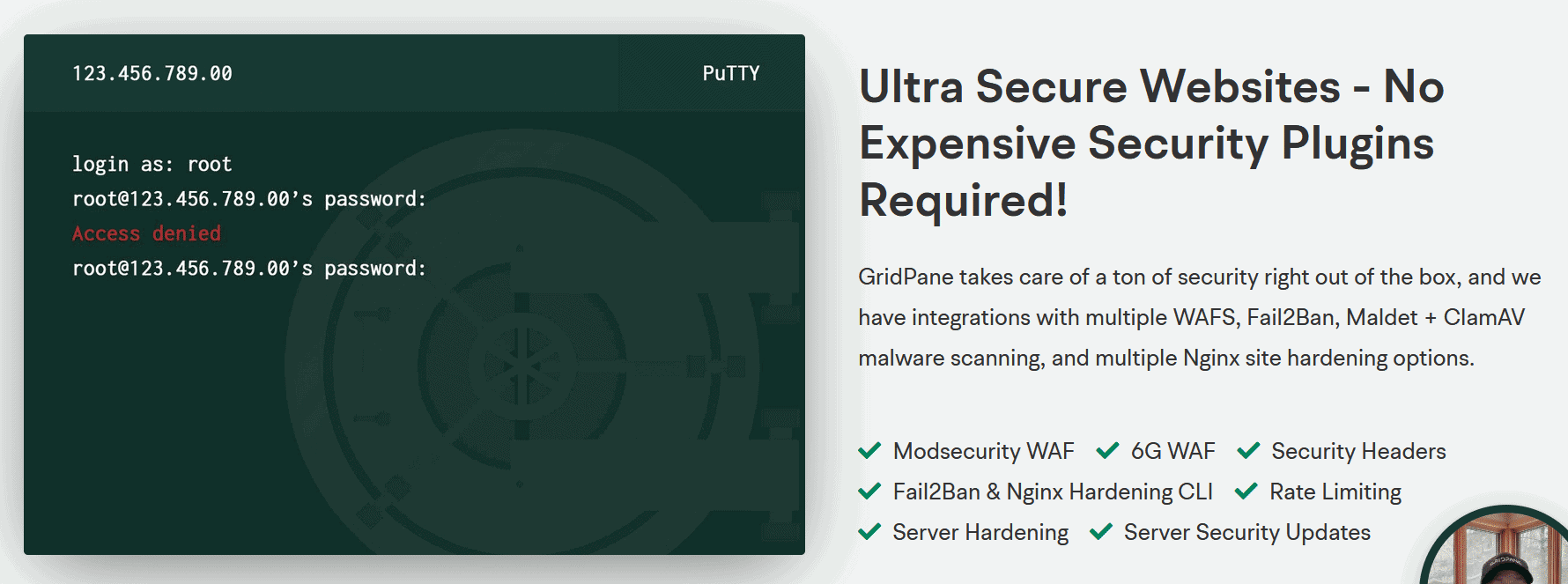 คุณลักษณะสำคัญที่บริษัทนี้เน้นย้ำอย่างต่อเนื่องในเว็บไซต์นั้น (และสิ่งที่เราเห็นระหว่างการใช้งานแผงส่วนหลัง) คือความปลอดภัยระดับองค์กร มีความปลอดภัยมากมายในกล่อง และคุณสามารถเพิ่มคุณสมบัติเพิ่มเติมได้ตามต้องการ อย่างแรกคือ modsecurity และ 6g WAF, ส่วนหัวความปลอดภัยอัตโนมัติ, การจำกัดอัตรา, การทำให้แข็ง, การอัปเดตความปลอดภัยที่ร้อนแรง และการชุบ Nginx ที่ล้มเหลว2แบน