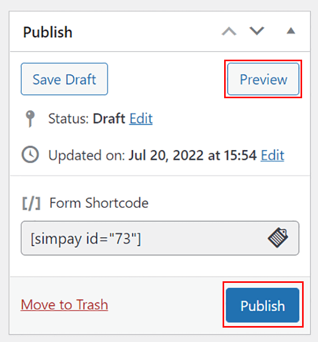 หากคุณกำลังใช้ตัวแก้ไขแบบคลาสสิกของ WordPress หรือธีมที่ไม่รองรับการบล็อก สิ่งที่คุณต้องทำคือคัดลอกรหัสย่อจากรายการแบบฟอร์มการชำระเงินแล้ววางลงในหน้าใดก็ได้