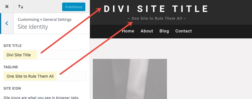 และบางคนไม่รู้ด้วยซ้ำว่าสโลแกนนั้นมีอยู่จริง ใช้เวลาในการอัปเดตน้อยกว่ามาก นอกจากนี้ เมื่อใช้ธีม Divi ชื่อไซต์และสโลแกนจะไม่ปรากฏบนไซต์ของคุณโดยค่าเริ่มต้น ดังนั้นจึงง่ายที่จะละเว้น อย่างไรก็ตาม ทั้งชื่อเว็บไซต์และสโลแกนเป็นองค์ประกอบที่สำคัญของเว็บไซต์และจะเป็นที่รู้จักจากเครื่องมือค้นหา