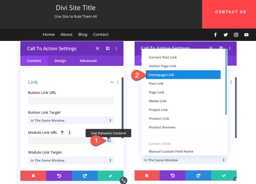 เป็นเรื่องปกติที่ชื่อเว็บไซต์จะเปลี่ยนเส้นทางไปยังหน้าแรกเมื่อคลิก โดยเฉพาะอย่างยิ่งหากคุณกำลังเปลี่ยนโลโก้ หากต้องการให้ทั้งโมดูลเปลี่ยนเส้นทางไปที่หน้าแรก ให้เพิ่มลิงก์หน้าแรกเป็นเนื้อหาแบบไดนามิกไปยัง URL ลิงก์ของโมดูล