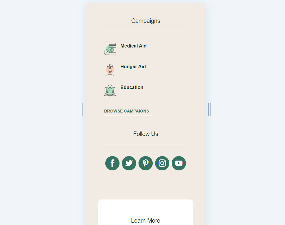 จากนั้นเลือกตำแหน่งในส่วนท้ายที่คุณต้องการวางไอคอนโซเชียล ฉันจะเพิ่มลงในที่ว่างภายใต้แคมเปญ ฉันจะเพิ่มชื่อและตัวแบ่งและจัดรูปแบบไอคอนให้เข้ากับเค้าโครง