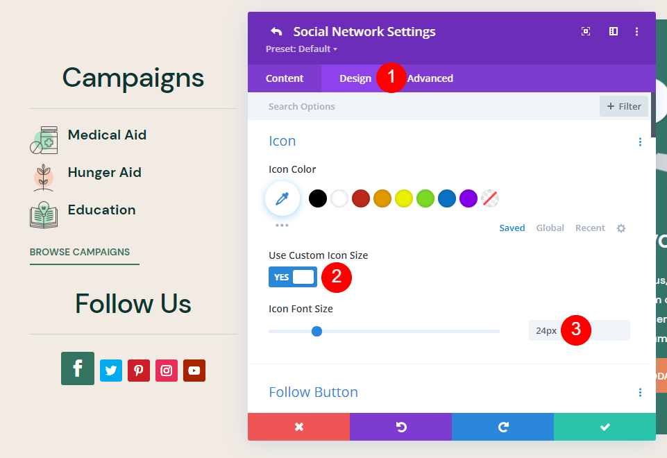 เลื่อนลงไปที่ตัวเลือก พื้นหลัง แล้วป้อนหมายเลข #347362 ซึ่งจะทำให้ไอคอนมีพื้นหลังสีเขียวที่ตรงกับ CTA ในส่วนท้าย และดูดีกับพื้นหลังสีแทน