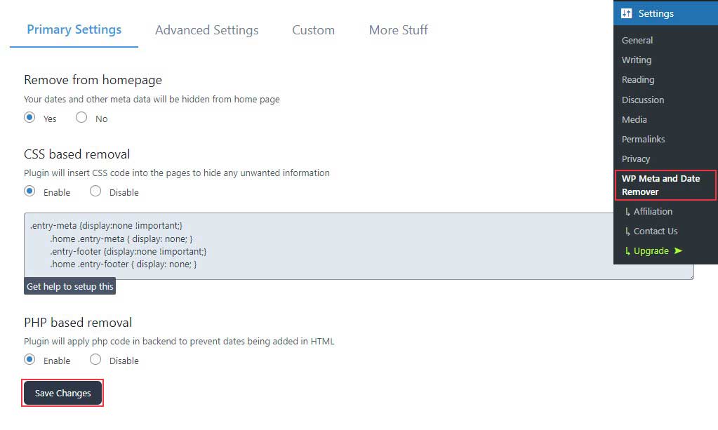 ที่นี่ คุณสามารถเปิดใช้งานทุกสิ่งใน แท็บการตั้งค่าหลัก และคลิกที่ปุ่ม บันทึกการเปลี่ยนแปลง เพื่อบันทึกการเปลี่ยนแปลงของคุณ