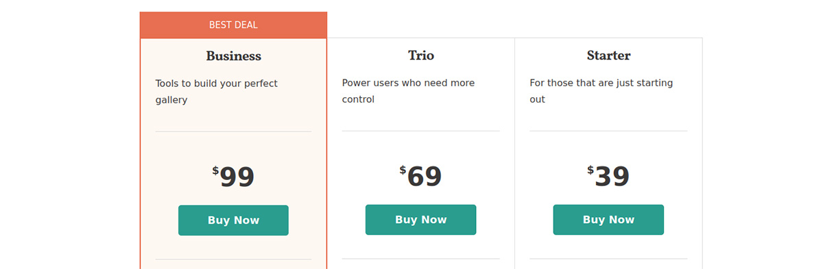 Envira Gallery Lite ใช้งานและติดตั้งได้ฟรี ราคาสำหรับฟีเจอร์พรีเมียมเริ่มต้นที่ 26 ดอลลาร์ต่อปี และสูงถึง 269 ดอลลาร์สำหรับการซื้อครั้งเดียวตลอดชีพ