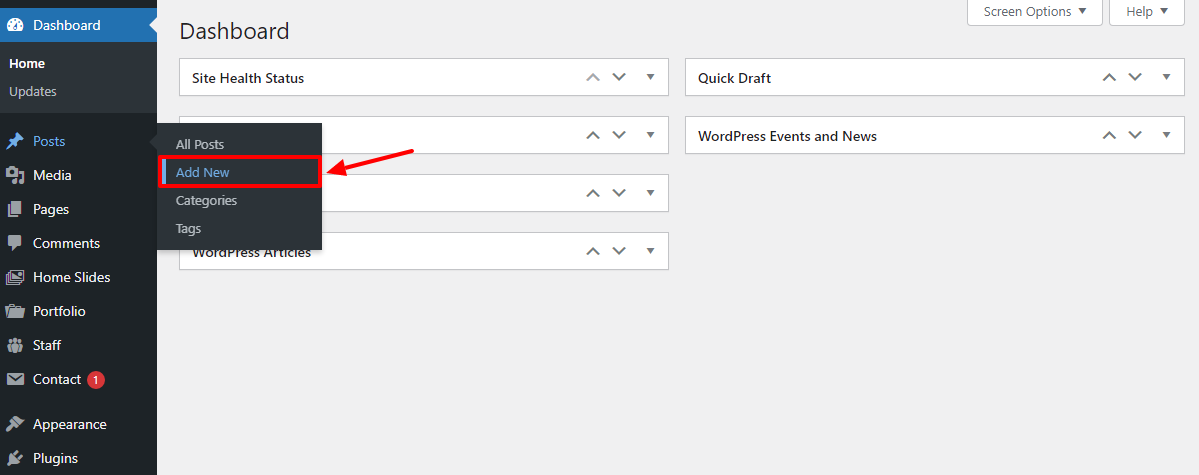 เข้าสู่ระบบกลับไปที่แดชบอร์ดผู้ดูแลระบบ WordPress และไปที่ โพสต์ > เพิ่มใหม่ :