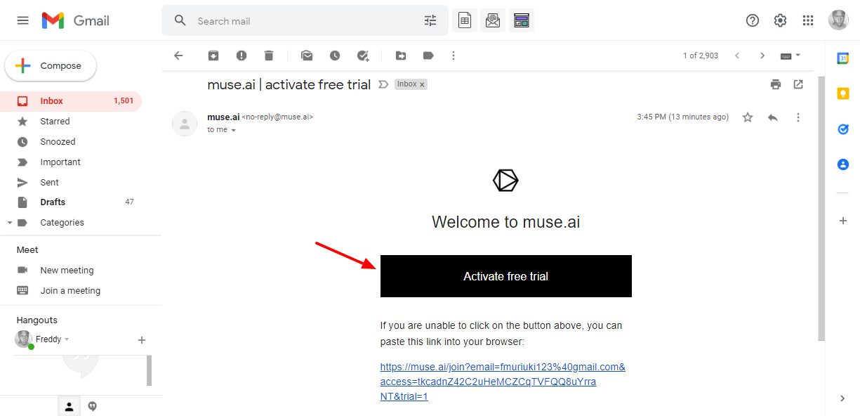 ถัดไป เข้าสู่ระบบกล่องจดหมายของคุณและเปิดใช้งานการทดลองใช้ฟรีของคุณ: