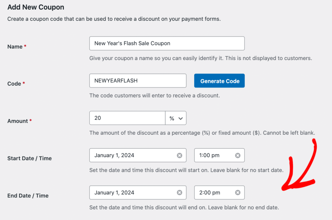 ภายในการตั้งค่าคูปอง คุณเพียงแค่ต้องปรับแต่งวันที่เหล่านี้อีกครั้งโดยเป็นส่วนหนึ่งของกระบวนการตั้งค่า