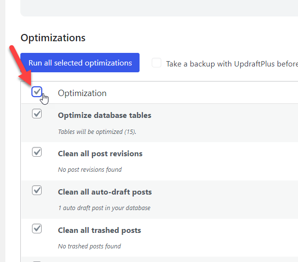 หากคุณต้องการปลั๊กอินปรับแต่งฐานข้อมูลเฉพาะสำหรับ WordPress ลองดู WP-Optimize เป็นปลั๊กอินฟรี และคุณสามารถล้างฐานข้อมูล MySQL ได้อย่างง่ายดายด้วยการคลิกเมาส์เพียงไม่กี่ครั้ง ผู้คนมากกว่า 1 ล้านคนกำลังใช้ WP-Optimize เพื่อล้างฐานข้อมูลและเพิ่มความเร็วให้กับเว็บไซต์ WordPress/ร้านค้า WooCommerce ทั้งหมด