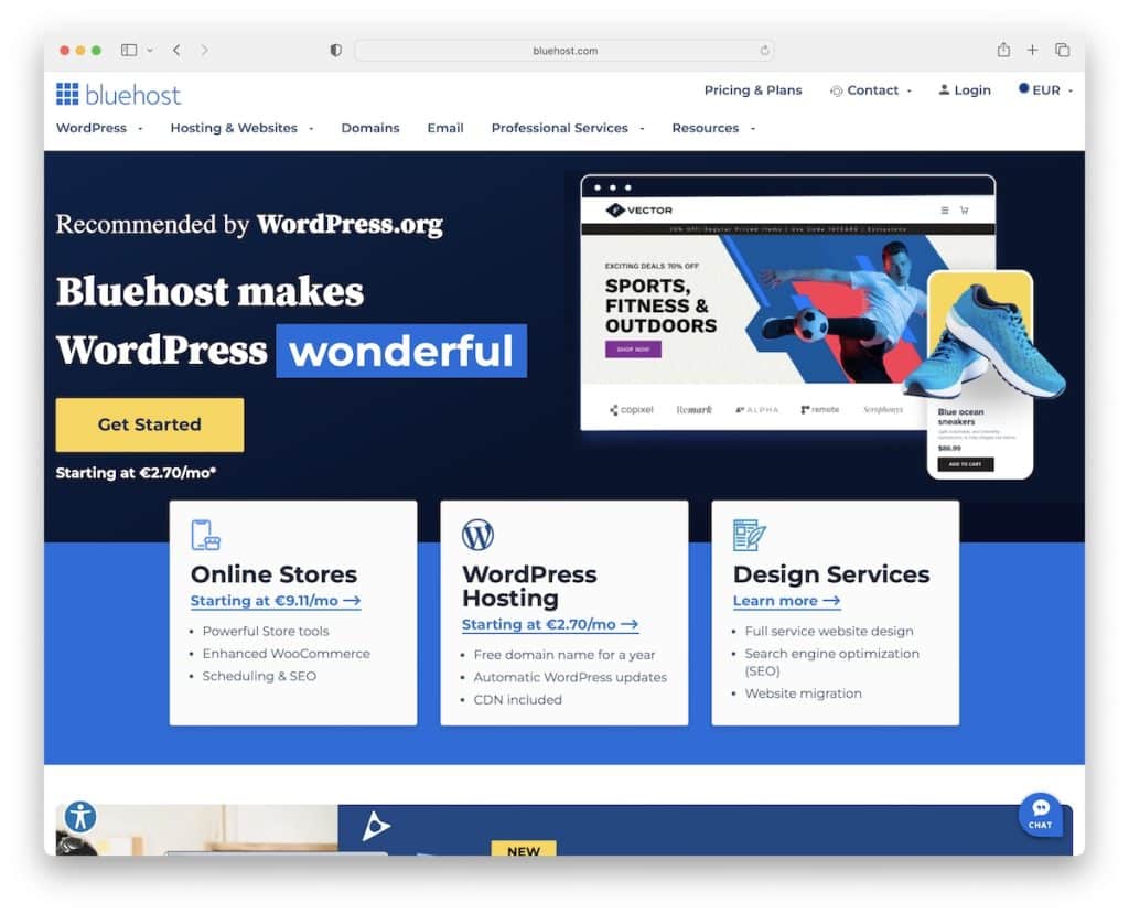 - Bluehost : เหมาะสำหรับผู้ใช้ WordPress ที่ต้องการประสบการณ์ที่ราบรื่น พร้อมการสนับสนุนลูกค้าที่แข็งแกร่ง