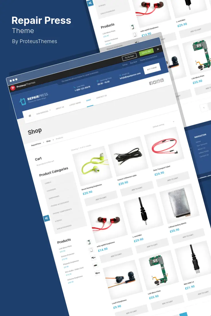 RepairPress เป็นธีม WordPress คุณภาพสูงสุดที่เหมาะสำหรับร้านซ่อมโทรศัพท์มือถือ ซ่อมกล้อง บริษัทซ่อมคอมพิวเตอร์ และอื่นๆ ชุดรูปแบบนี้ติดตั้งและใช้งานได้ง่ายอย่างเหลือเชื่อ และดึงชิ้นส่วนทั้งหมดมารวมกันเพื่อช่วยให้คุณสร้างเว็บไซต์ที่เป็นระเบียบ ดังนั้นคุณจึงสามารถมุ่งเน้นไปที่สิ่งที่สำคัญที่สุด ซึ่งก็คือลูกค้าของคุณ
