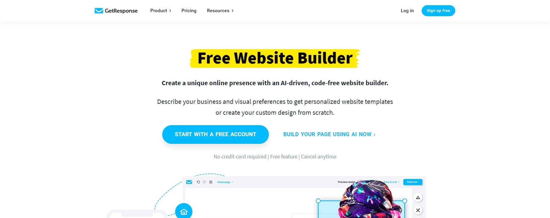 | 4 | GetResponse Yapay Zeka Web Oluşturucu | 19 $/ay | ️ | Elde etmek |