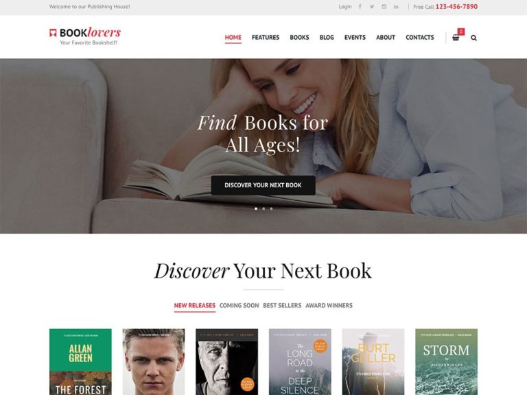 Booklovers, bir yayınevi için web sitesi oluşturmak için kullanabileceğiniz bir WordPress temasıdır.