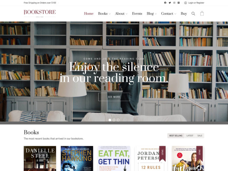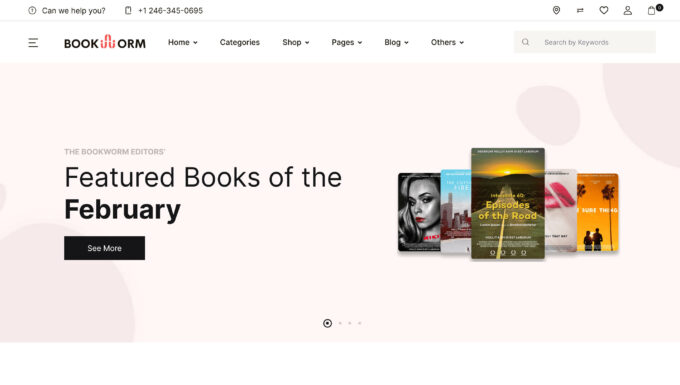 Kitap kurdu, 13 farklı ana sayfa şablonuna sahip modern bir kitapçı temasıdır.