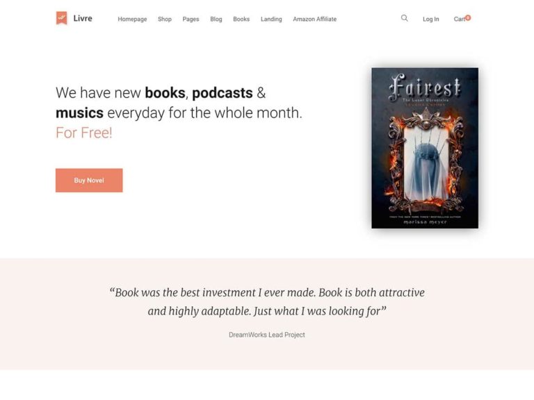 Livre, çevrimiçi kitapçılar da dahil olmak üzere WordPress ile neredeyse her tür kitapla ilgili web sitesi oluşturmak için kullanılabilir.